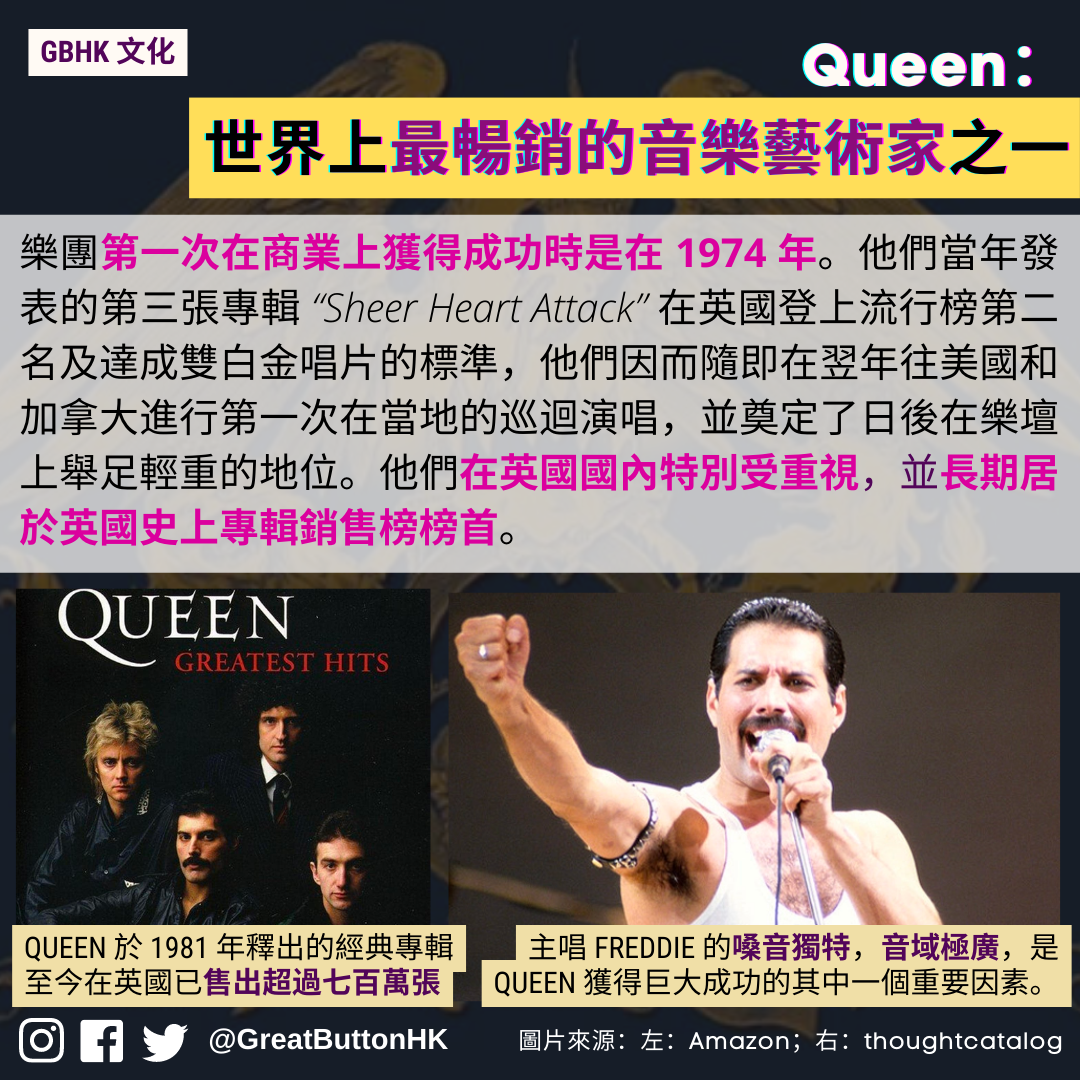 你知道 Queen 是誰嗎?相信港台的讀者們或多或少也會對這隊經典樂隊略有聽聞,但你又知不知道他們至今仍在英國風靡萬千呢?適逢最近他們第一張經典金曲專輯 “Greatest Hits” 的總銷售量達七百萬張,創下英國樂壇紀錄,就讓我們了解一下這隊在英國文化中佔有相當重要地位的搖滾樂隊吧!