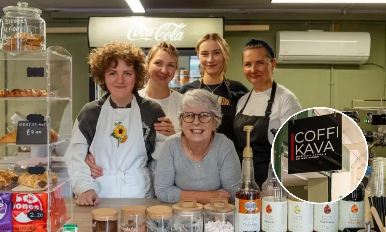 現年 62 歲 的 Sian Lewis 已從 NHS 的工作退休,並於三年前贊助這兩姊妹從烏克蘭來到威爾斯。這三位女士因對烘焙和優質咖啡的共同熱愛而結緣,並接管了 Caerphilly 火車站的咖啡室,並將其命名為 Coffi Kava,這兩個詞在威爾斯和烏克蘭語中分別是「咖啡」的意思。咖啡室的餐單融合了傳統烏克蘭風味和威爾斯食材,以推廣兩地文化。威爾斯交通局(Transport for Wales)亦表示,該公司對這項新業務感到「非常高興」(”thrilled”)。