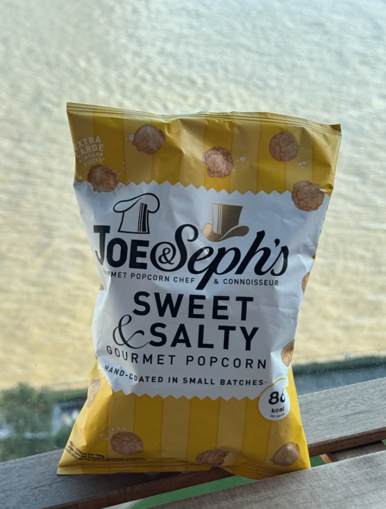 Joe & Seph’s 這款焦糖海鹽黑胡椒爆谷口味組合非常特別,餘韻微辣帶甜。每粒爆谷裹得均勻,口感香脆,非常有驚喜,是 Joe & Seph’s 系列中最具創意與平衡感的一款。
