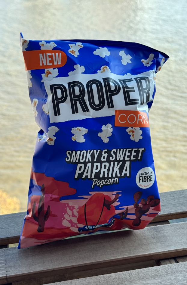 Proper 的這款爆谷不算脆口,不過煙燻與甜椒香氣自然融合,鹹香適中、餘韻溫和。