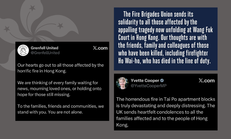 大埔宏福苑五級火:英國各界致以慰問 惟英媒個別報導惹爭議