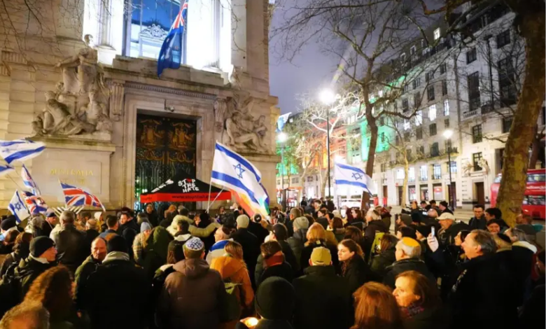 逾百名市民在昨晚聚集於倫敦市中心的 Australian High Commission 外,現場可見英國及以色列國旗飄揚,不少人手持「停止仇恨」(”Stop the Hate”)標語。Marylebone 猶太教堂的拉比(rabbi) Yisroel Lew 在集會上點燃光明節的大燭台(Menorah),並強調:「不要畏懼,繼續慶祝光明節。」(”Don’t be afraid and celebrate Hanukkah.”)倫敦西北區亦有多場猶太社區慶祝活動,而警力明顯有所加強。