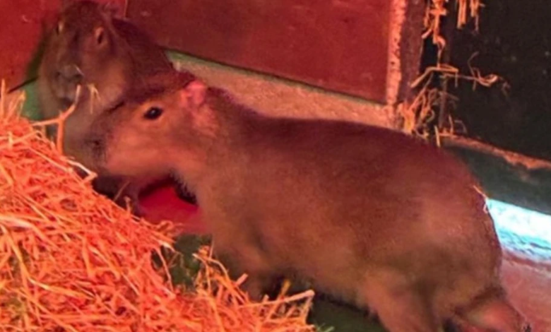 另一隻九個月大的水豚 Tango(圖中與 Samba 在一起)也同時逃脫,但後來在附近被找到。(圖片來源:BBC/Marwell Wildlife)