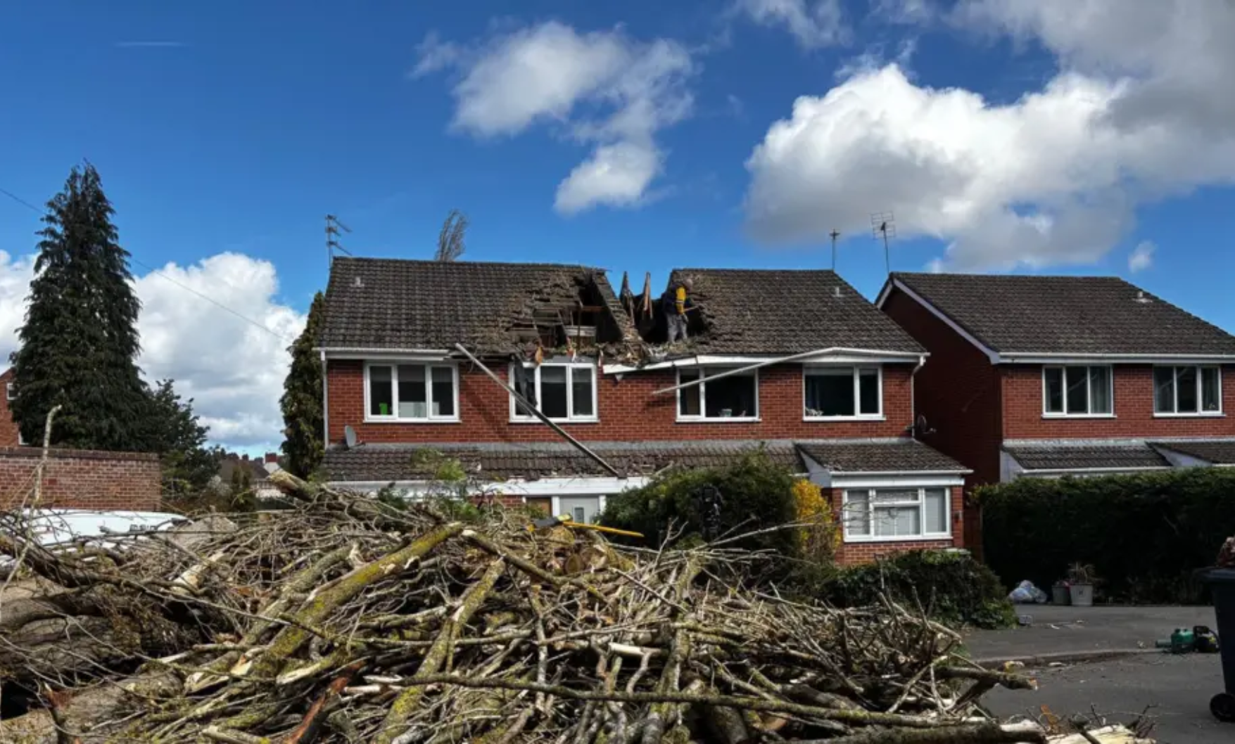 據 BBC 報導,英國近日受風暴 Storm Dave 吹襲,史德福郡(Staffordshire)昨日(4 月 4 日)有一棵大樹倒塌壓中半獨立屋,導致兩個家庭無家可歸。