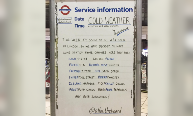 英國步入寒冬季節:人氣倫敦地鐵告示板大玩文字遊戲 改地方名