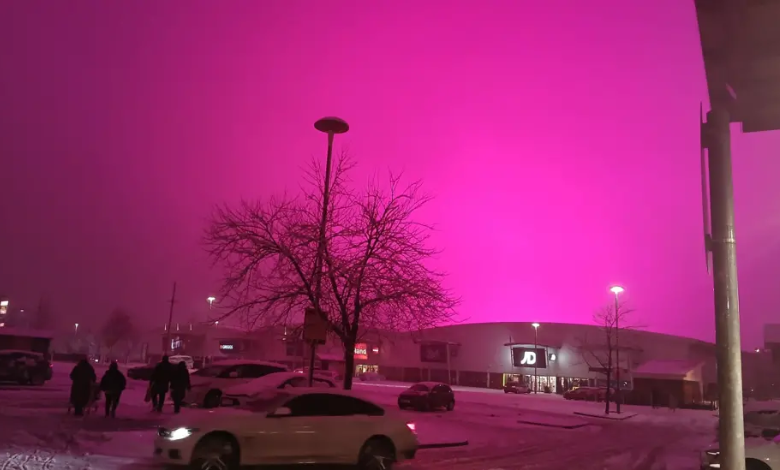伯明翰突現神秘粉紅夜空 網民熱議「極光」成因
